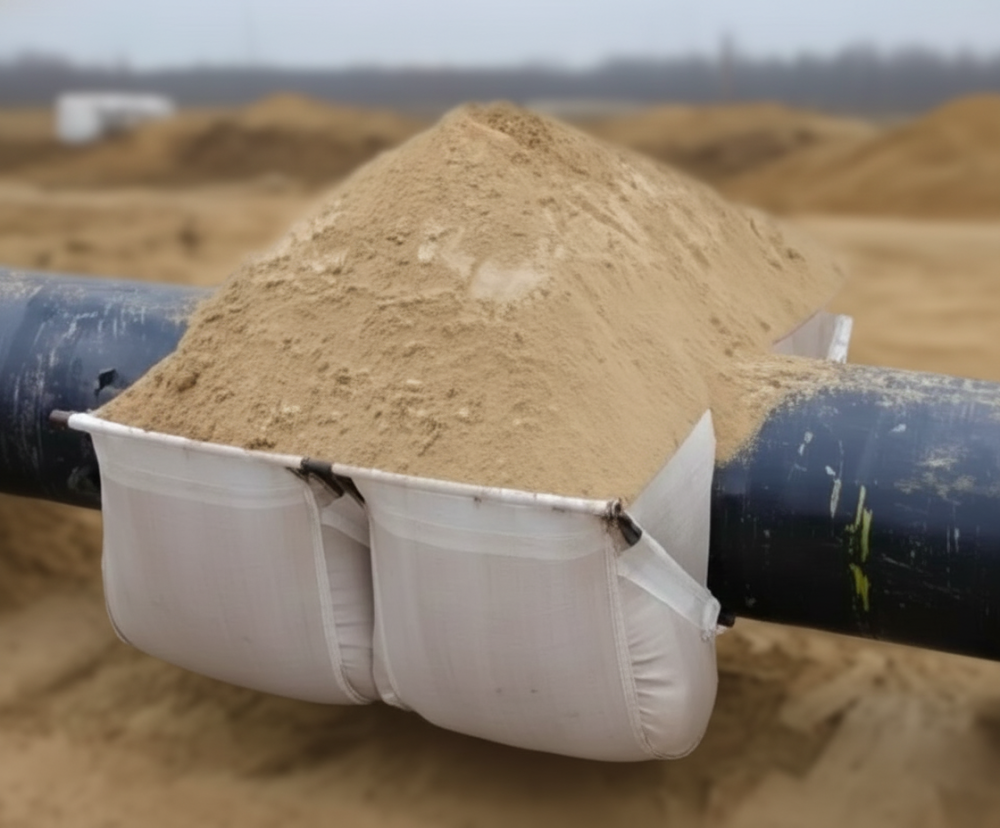 Полимерконтейнерное балластирующее устройство (ПКБУ-МК) используется для балластировки трубопроводов диаметром 325 - 1420 мм, в т. ч. плавающих в обводненной траншее, в т. ч. на болотах при мощности торфяной залежи не более глубины траншеи, заполняется грунтом из отвала после монтажа на трубопровод.