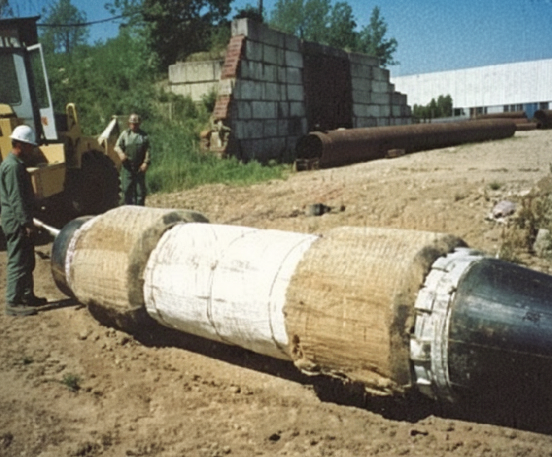 Способ применения уплотнительных ковриков из скального листа (УКСЛ) (УКСЛ УТК, УКСЛ ЧГ) - Трубопровод по всей длине футеруют скальным листом. В зазор между внутренней поверхностью полукольца утяжелителя (груза) и поверхностью рабочей плети укладываются полукольца из скального листа синхронно с монтажом полуколец утяжелителей или грузов.