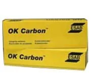 Омедненный графитовый электрод, предназначенный для воздушно-дуговой резки и строжки металла. В отличие от OK GPC, данный процесс обладает значительно более высокой производительностью, т.к. расплавленный металл удаляется потоком сжатого воздуха, подаваемого в специальный держатель для воздушно-дуговой строжки под давлением 5-8 бар, при расходе сжатого воздуха от 500 до 1500 л/мин. Это делает его наиболее востребованным для удаления дефектов сварных швов на промышленных предприятиях, а также для удаления прибылей и литниковых систем в отливках. В отличие от автогенной поверхностной строжки, данный процесс применим практически для всех электропроводных материалов. Электрод зажимается в держателе с вылетом около 100-150 мм и по мере сгорания выдвигается из держателя. Угол наклона электрода к обрабатываемой поверхности составляет 45-60°. Скорость строжки обычно варьируется в пределах от 0,5 до 1,0 м/мин. При строжке нержавеющих сталей происходит науглероживание по¬верхностного слоя, поэтому во избежание потери стойкости металла к межкристаллитной коррозии необходимо механически удалять этот слой. Следует помнить, что процесс воздушно-дуговой резки сопровождается сильным шумом и выбросом расплавленного металла на большие расстояния, поэтому рабочему необходимо защищать не только глаза и коже, но и органы слуха, а также строго соблюдать правила пожарной безопасности. Данные электроды выпускаются как круглой, так и прямоугольной формы, соединяемые – Jointed (позволяющие вставлять один электрод в другой, тем самым сводя к минимуму огарок) и несоединяемые – Pointed, а также подразделяются на предназначенные для работы на постоянном токе прямой полярности и для переменного тока. Электроды с круглым сечением используют, преимущественно, для снятия фасок, строжки канавок и резки. Электроды с прямоугольным сечением применяют для очистки поверхности и устранения поверхностных дефектов на стальных отливках.