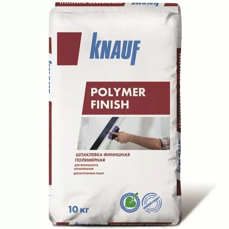 Смесь сухая шпаклевочная полимерная финишная Knauf Полимер Финиш 10 кг Финишная шпаклевка изготавливается на основе полимерного связующего с добавлением армирующих волокон. Служит для финишной обработки поверхностей в сухих помещениях перед поклейкой обоев или окраской. Наносить смесь следует на уже выровненную поверхность. Полное высыхания слоя в 4 мм достигается через 60 часов. Остатки полимерной финишной шпаклевки Knauf, как сухой, так и затворенной, следует утилизировать как строительный мусор – не спускать в канализацию. Преимущества: обладает высокой пластичностью; трещиностойкая; высокая адгезия; толщина слоя до от 0,2 до 4 мм; жизнеспособность раствора достигает 72 часов; подходит для механизированного нанесения; минимальная усадка благодаря армирующим волокнам. Упаковка и хранение Шпаклевка полимерная Knauf массой 10 кг реализуется в бумажных трехслойных мешках со средним слоем полиэтилена. Хранить мешки следует на поддонах в заводской упаковке в сухих помещениях, не допуская контакта с землей, оберегая от воздействия влаги.
