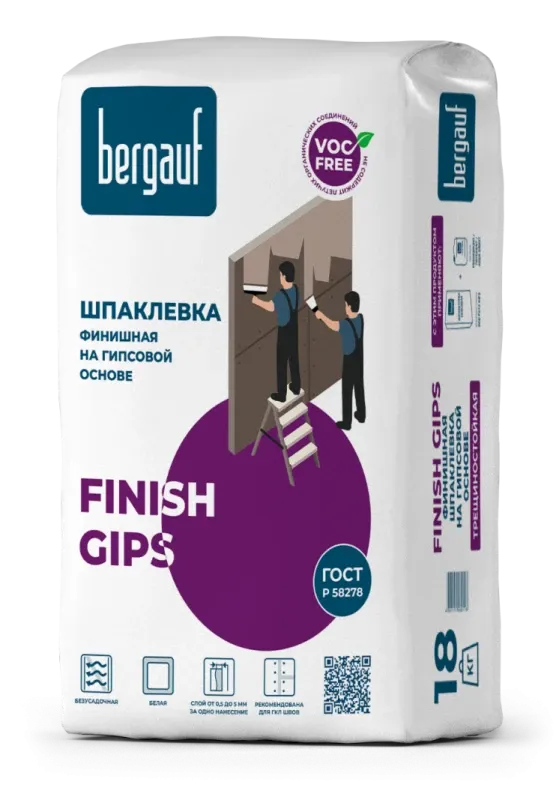 —Шпаклевка гипсовая финишная Finish Gips 18кг Bergauf *1/56