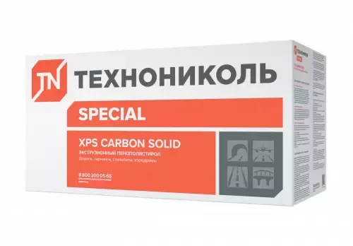 Область применения: XPS ТЕХНОНИКОЛЬ CARBON SOLID тип А применяется в качестве теплоизоляции в основании дорожно-транспортных сооружений, а также в общегражданском строительстве при устройстве теплоизоляции фундаментов, эксплуатируемых кровель, нагружаемых полов при повышенных требованиях к прочности утеплителя. Описание:   XPS ТЕХНОНИКОЛЬ CARBON SOLID тип А отличается особо высокой стойкостью к нагрузкам и является высокопрочным теплоизоляционным материалом. XPS ТЕХНОНИКОЛЬ CARBON SOLID тип А не впитывает воду, не набухает и не дает усадки, химически стоек и не подвержен гниению. Высокая прочность позволяет получить ровное и одновременно жесткое основание, что существенно увеличивает срок эксплуатации всей теплоизоляционной системы. При производстве XPS ТЕХНОНИКОЛЬ CARBON SOLID Тип А используются наноразмерные частицы углерода. Наноуглерод стабилизирует характеристики прочности и теплопроводности. Благодаря насыщению наноуглеродом плиты XPS ТЕХНОНИКОЛЬ CARBON SOLID Тип А сохраняют свои характеристики на протяжении всего срока службы материала. Долговечность материала подтверждена НИИСФ РААСН и составляет более 50 лет   Материал применяется:   ■ в качестве теплоизоляции оснований транспортных сооружений; ■ при утеплении магистралей, взлетно-посадочных полос, логистических центров, автомобильных парковок и других объектов, которые испытывают постоянные повышенные нагрузки; ■ в общегражданском строительстве при устройстве теплоизоляции фундамента, эксплуатируемых кровель, нагружаемых полов при повышенных требованиях к прочности теплоизоляционного слоя; ■ в условиях вечной мерзлоты сооружение теплоизоляционных слоев из XPS ТЕХНОНИКОЛЬ CARBON SOLID позволяет сохранять вечномерзлые грунты в естественном состоянии, что предотвращает оттаивание и исключает просадку земляного полотна   Технические характеристики   Показатель  Значение SOLID 500 SOLID 700 SOLID 1000 Прочность на сжатие при 10% линейной деформации, не менее, кПа 40 - 49 мм 50 мм  > 50 мм 500 500 500 - * 700  - *   -  * 1000  - *   Прочность при изгибе, кПа, не более 40 – 49 мм 50 мм 51 – 79 мм ≥ 80 мм 400 400 400 300 - * 550 - * -*     - * 650 - * -* Теплопроводность при (25±5)0С, Вт/(м*К), не более** 40 - 49 мм 50 - 79 мм  > 80 мм 0,031 0,030 0,032 Теплопроводность в условиях эксплуатации «А» и «Б», Вт/(м*К), не более 0,034 Водопоглощение, не более,% 0,2 Группа горючести *** Г4/Г3 Группа воспламеняемости В2 Группа дымообразующей способности/токсичность Д3/Т2 Температура эксплуатации,оС от -70 до +75   Габариты и логистические параметры:   Модель / толщина Размер плиты (В*Ш*Д), мм Плит в пачке шт Площадь в пачке м2 Объем в пачке м3 Размер палеты (Д*Ш*В), см Вес палеты, кг CARBON SOLID, 40 мм 40*600*2400 10 14,4 0,57600 120*120*248 132 CARBON SOLID, 50 мм 50*600*2400 8 11,52 0,57600 120*120*248 132 CARBON SOLID, 60 мм 60*600*2400 7 10,08 0,60480 120*120*260 138 CARBON SOLID, 100 мм 100*600*2400 4 5,76 0,57600   120*120*248 132